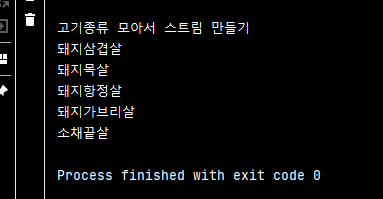 System.out.println("\n고기종류 모아서 스트림 만들기");