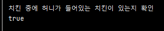 System.out.println("\n치킨 중에 허니가 들어있는 치킨이 있는지 확인");