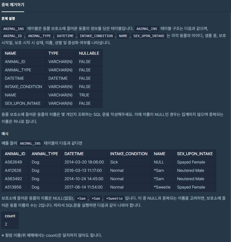 [SQL] 프로그래머스 중복 제거하기 본문