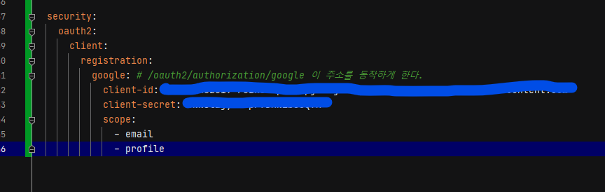 주석에 기재한 것처럼 /oath2/authorization/google 주소를 동작하게한다. (12번항목에서 사용)