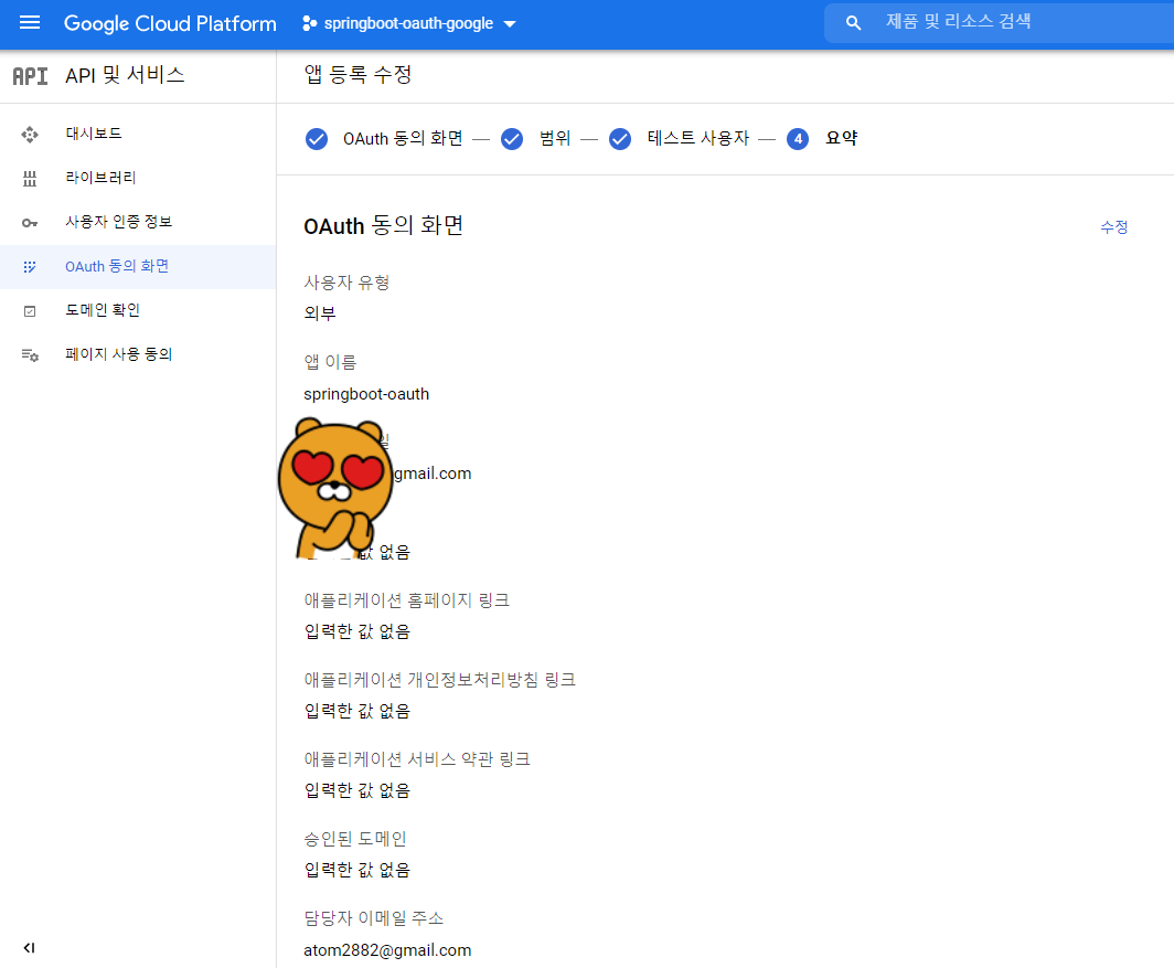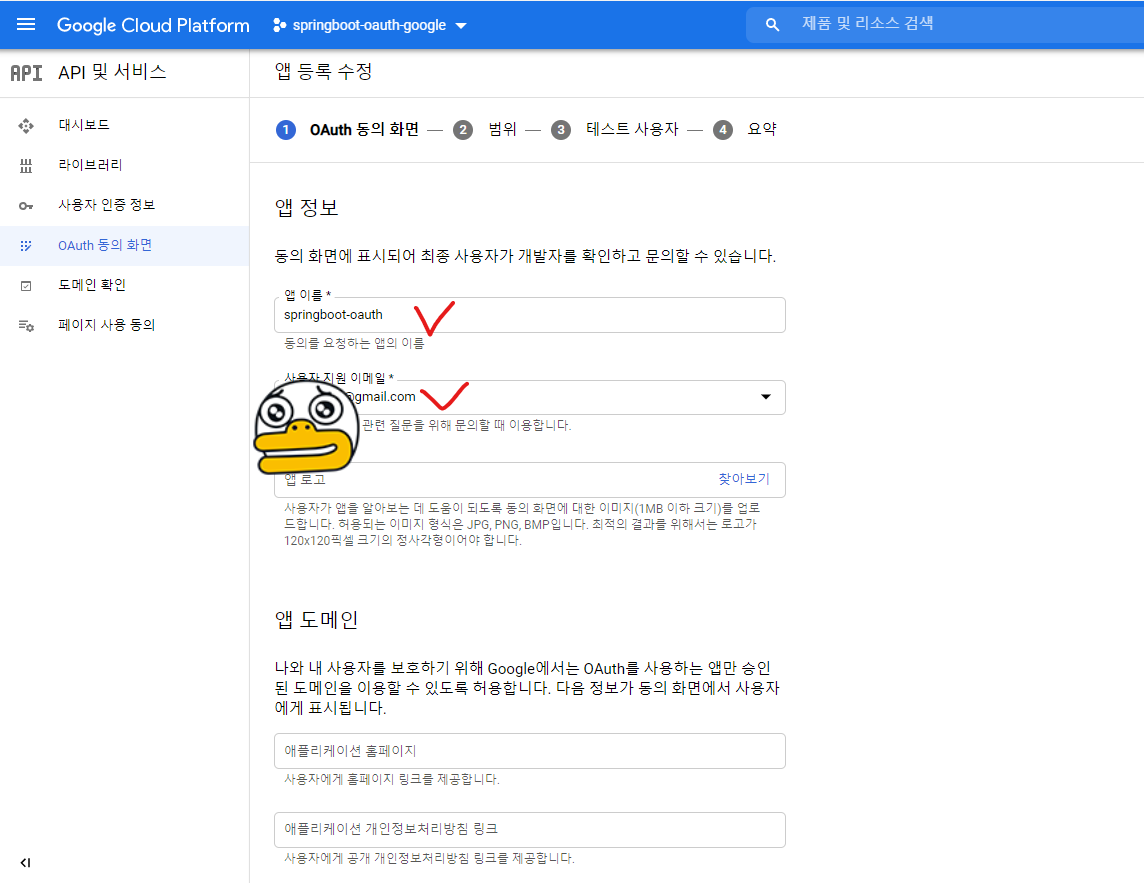 4. 앱 이름, 본인 이메일만 기입하고 넘어간다.