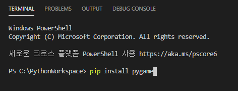 pip install pygame 명령어 입력.