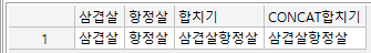 CONCAT(삼겹살, 항정살) AS CONCAT합치기