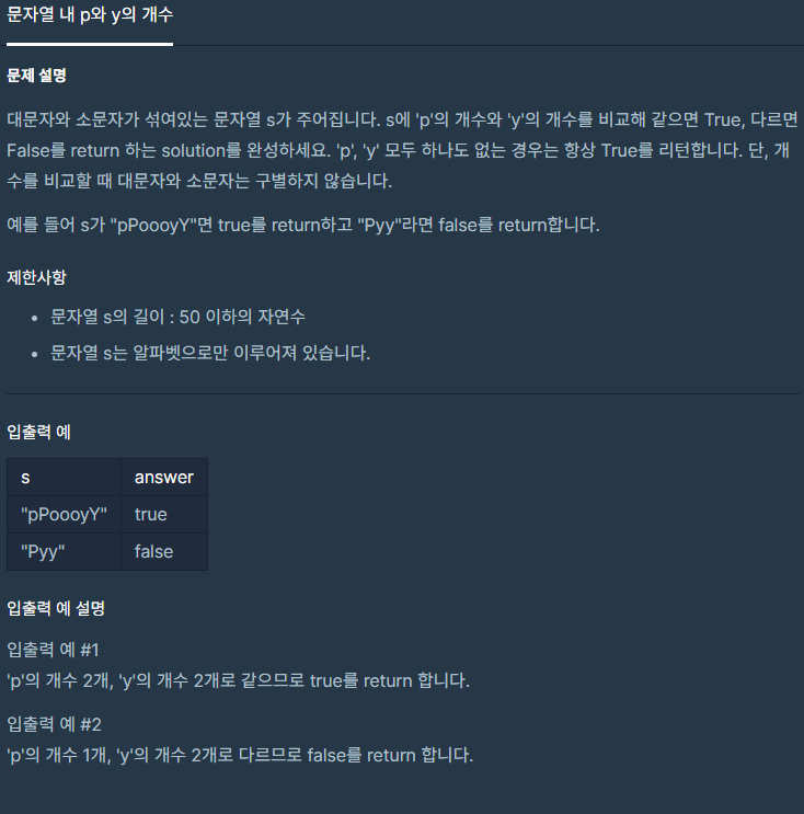 코딩테스트 연습 - 문자열 내 p와 y의 개수