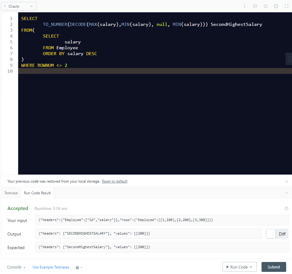 Second Highest Salary - LeetCode