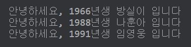 println("안녕하세요, ${birthYear}년생 ${name} 입니다")